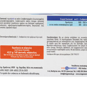 Το VioGenesis Colostrum περιέχει λυοφιλιωμένη σκόνη άπαχου γάλακτος από αγελαδινό πρωτόγαλα πρώτου και δεύτερου αρμέγματος. Παρέχει ανοσοσφαιρίνες (IgG) 150 mg (30%).