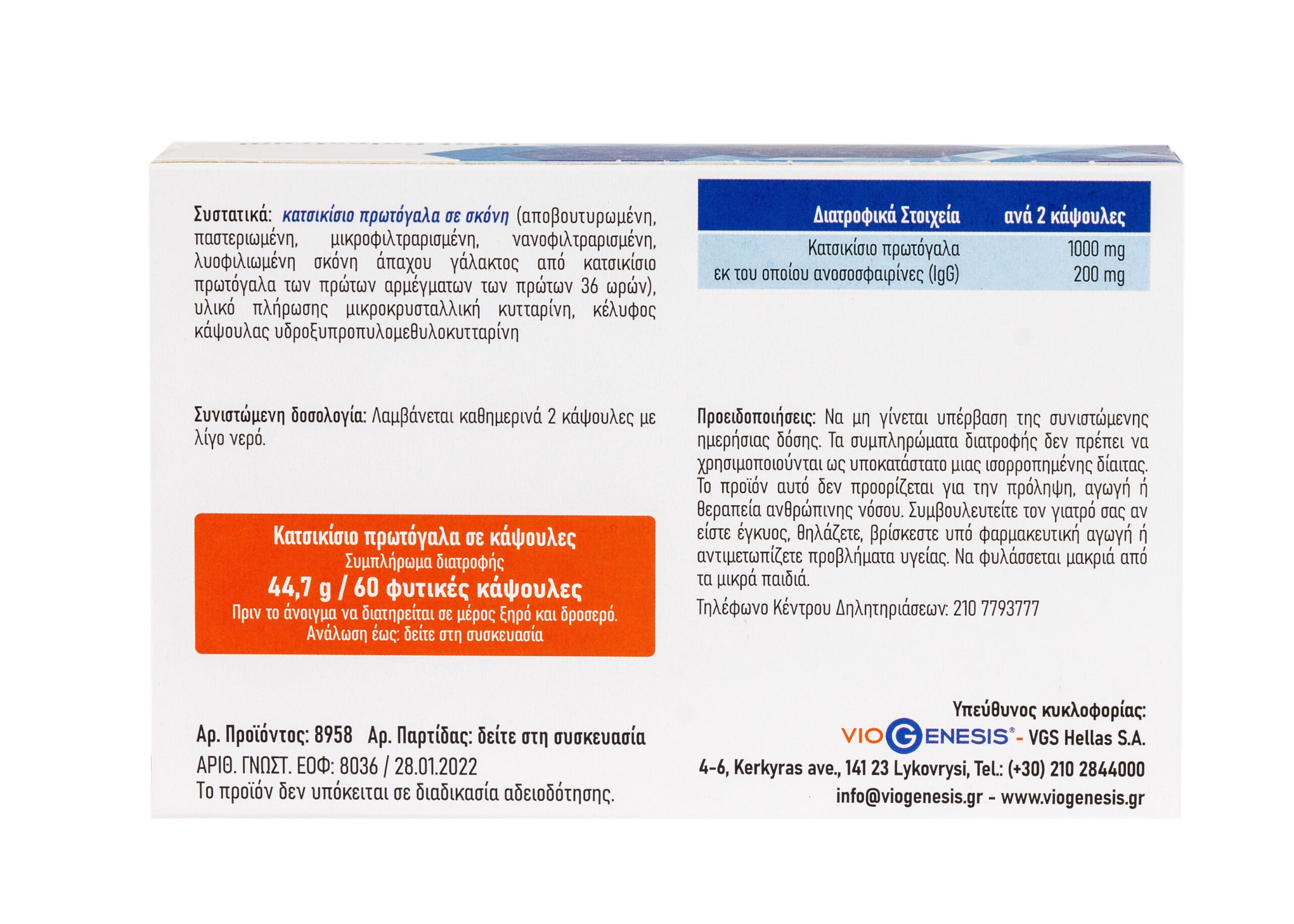 Συμπλήρωμα διατροφής με κατσικίσιο πρωτόγαλα σε κάψουλες. Περιέχει ανοσοσφαιρίνες και τελομεράση.